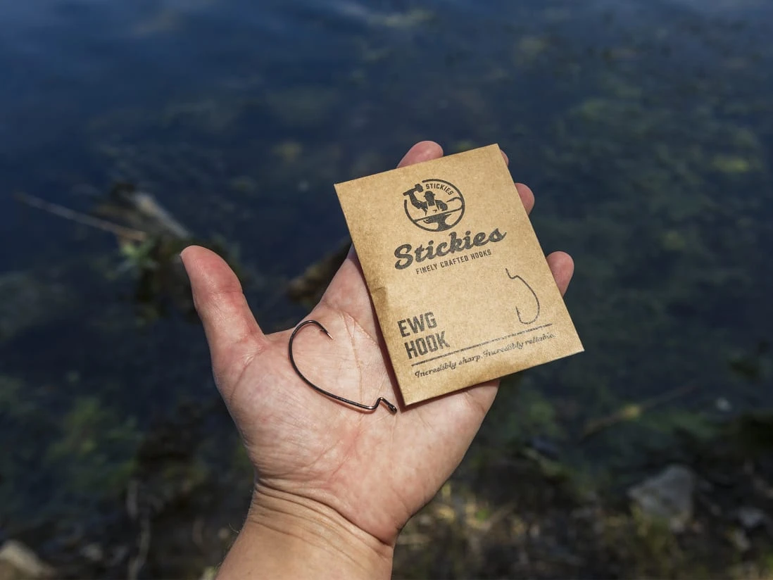Any bass angler can appreciate a good EWG hook. EWG stands for Extra Wide Gap which is a reference to the amount of space between the hooks shank and the hook point. The added ‘gap’ space allows for larger soft plastic baits to be rigged without getting in the way during hookset. The Stickies EWG comes with a well-balanced gauge, sticky sharp hook point, and well-placed line tie. Together, these features provide you, the angler with everything needed in a good EWG hook.